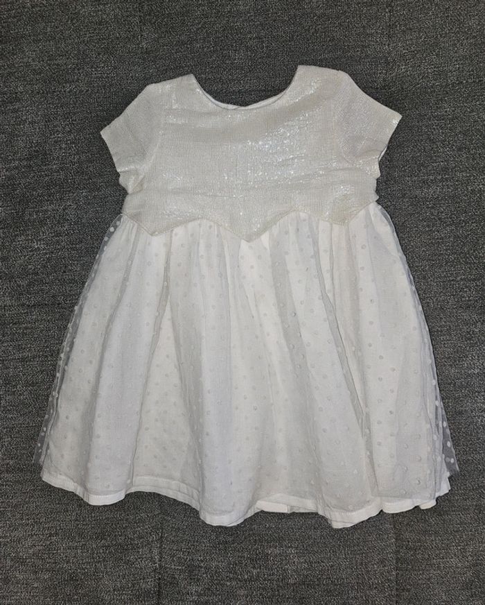Robe Bi-matière Catimini Très bon état porté 1 fois pour une cérémonie Taille 6 mois soit 68cm Haut brillant et tulle à pois Authentique