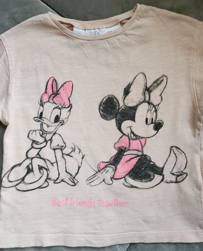 Tee shirt longues manches Zara minnie et daisy Très bon état Taille 18-24 mois soit 92 cm Rose fluo