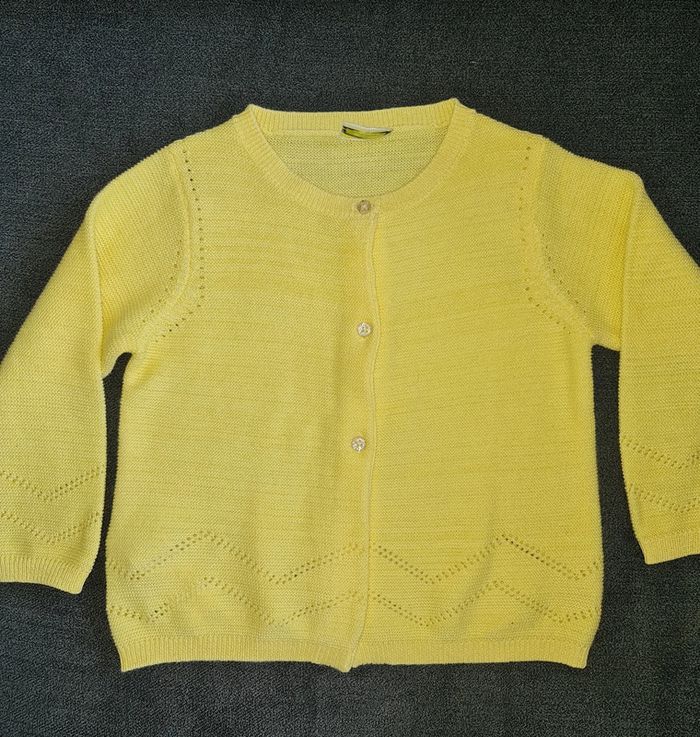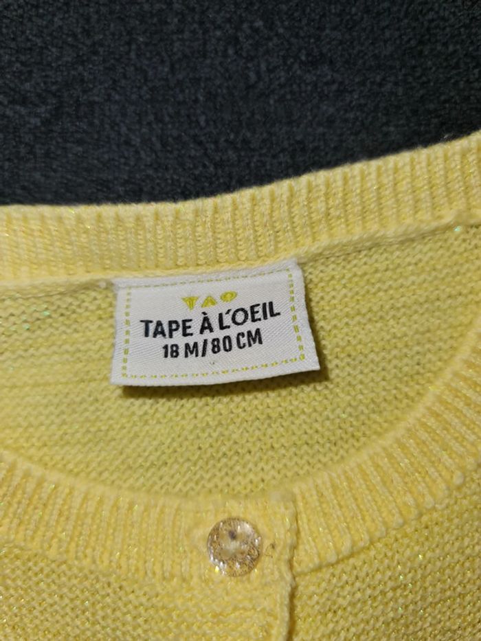 Gilet tape à l'œil Neuf m'a fille ne l'a jamais porté mais j'ai malheureusement retiré l'étiquette Taille 18 mois Jaune poussin avec petites pailletes