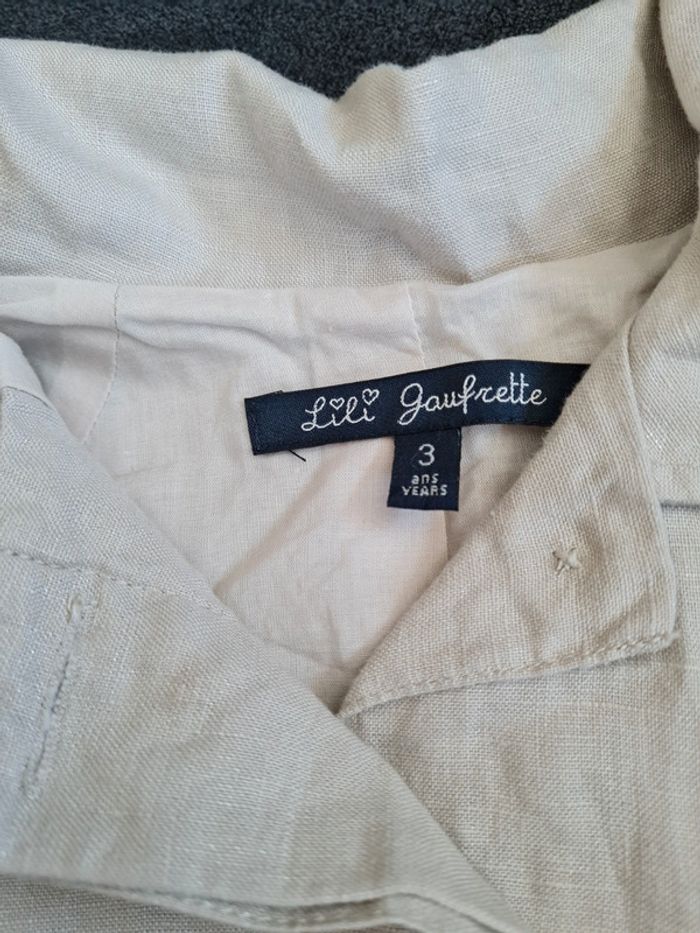 Veste 100% lin lili gaufrette Très bon état porté 1 fois Taille 3 ans Légèrement doré magnifique Authentique