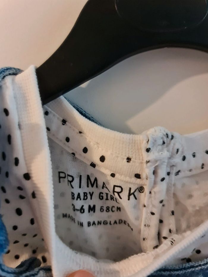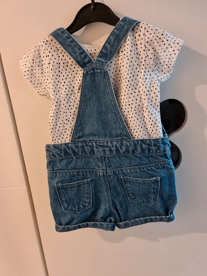 Ensemble salopette-short et tee-shirt à pois denim co Neuf jamais portée Taille 3-6 mois