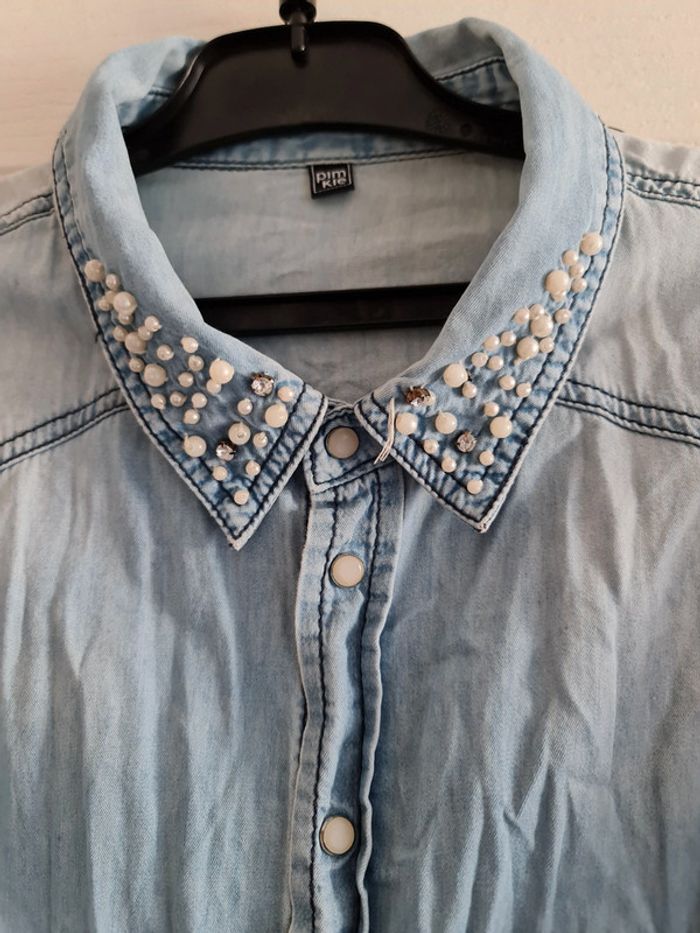 Chemise en jeans perlées pimkie Bon état car manque une seule perle Strass et perles boutons à pressions Taille 42