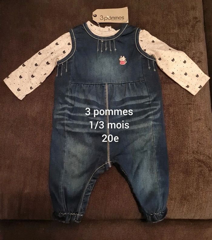 Ensemble 3 pommes Très bon état jamais portées Taille 1-3 mois Authentique