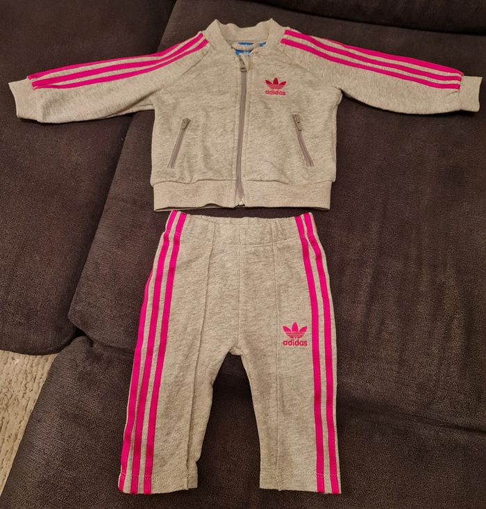 Ensemble jogging Adidas Très bon état Taille 3-6 mois Motif adidas en velours et bandes en satin Authentique