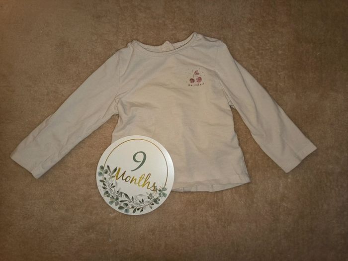 T-shirt manches longues Marque Vertbaudet Taille 9 mois Très bon état Pression tout le long dans le dos