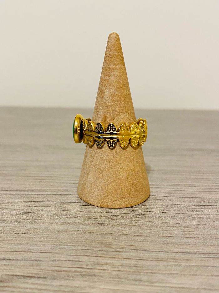 Bague ajustable doré martelée verte acier inoxydable - photo numéro 3