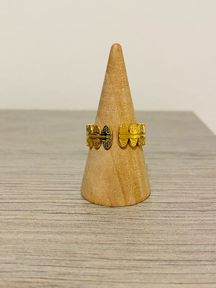 Bague ajustable doré martelée verte acier inoxydable - photo numéro 2