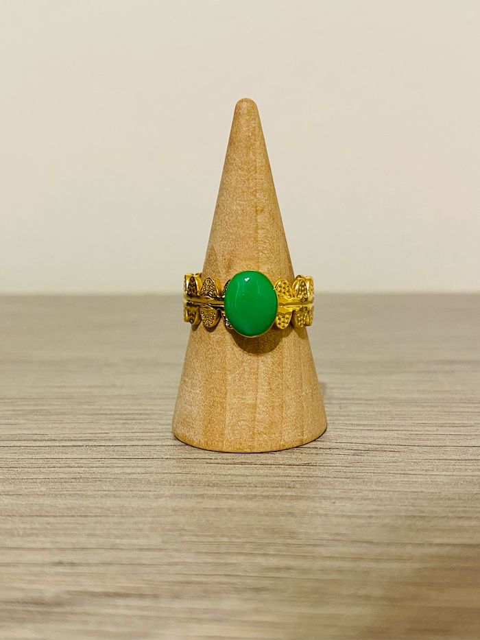 Bague ajustable doré martelée verte acier inoxydable - photo numéro 1
