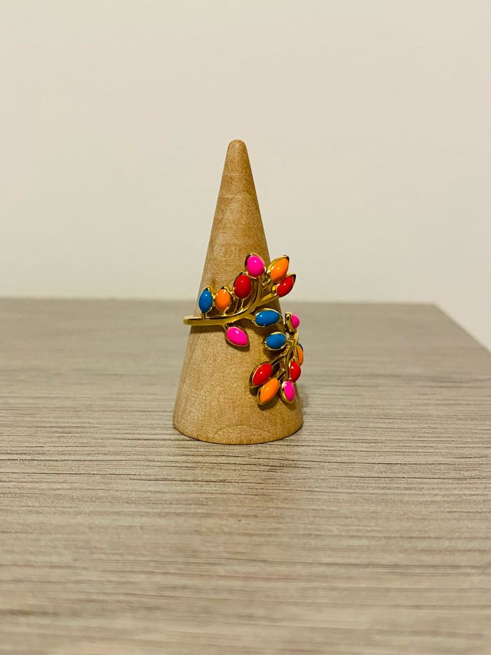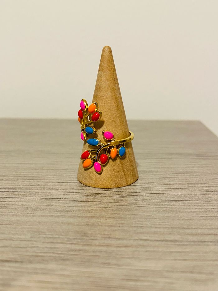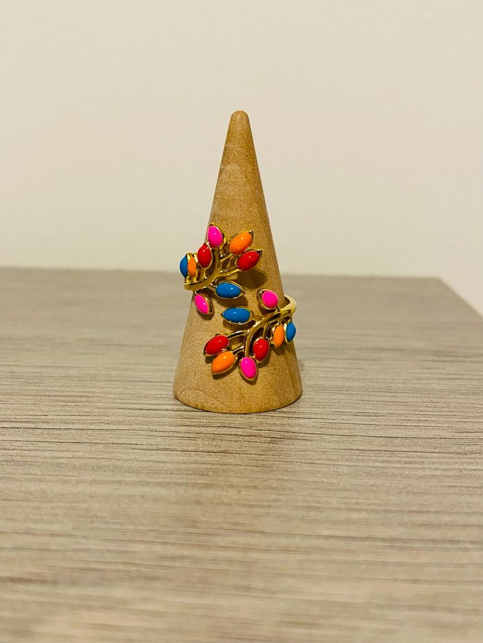 Bague épaisse doré ajustable tendance fleurs torsadée coloré acier inoxydable - photo numéro 1