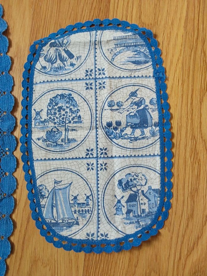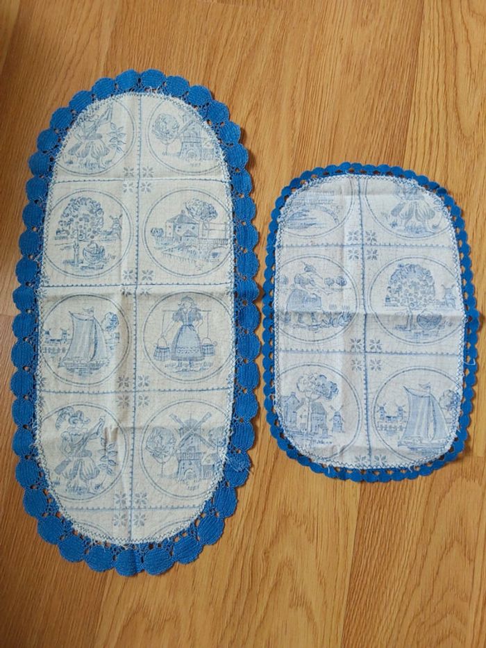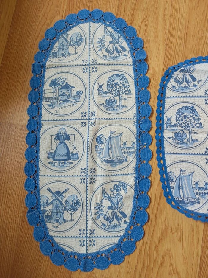 44 cm X 20 cm 18 cm X 28 cm Jolis napperons anciens vintage beige et bleu Motifs représentant différentes régions Anciens,mais en bon état +++ #legrenierdeprovencedivers #napperonsbleus #napperonvintage #napperonovale #lotnapperons