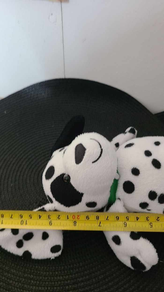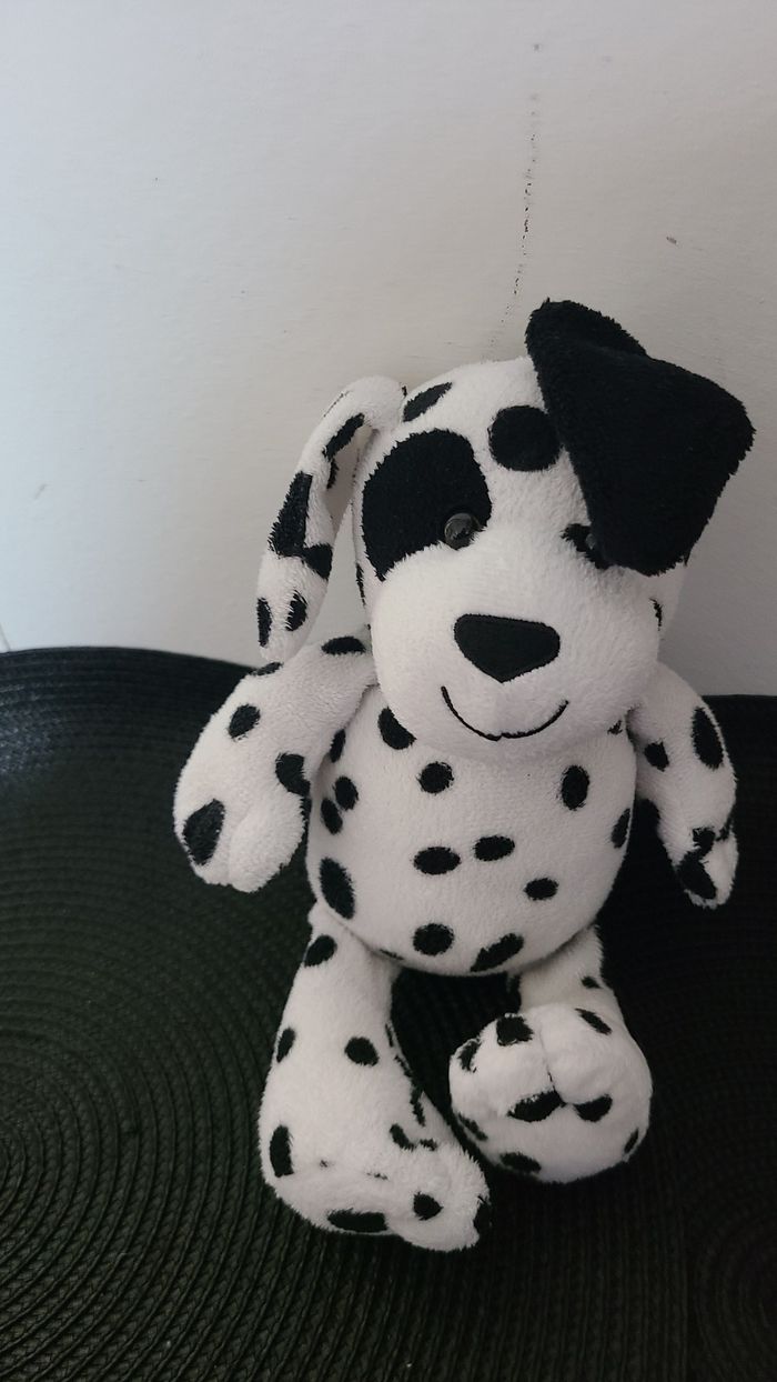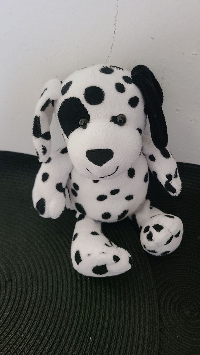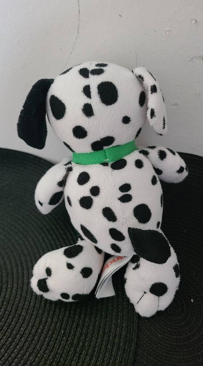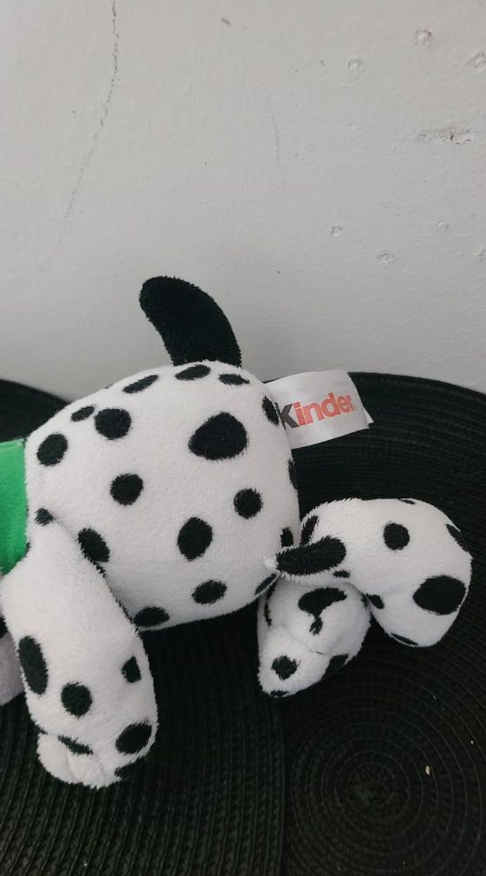 Peluche Doudou Kinder Le Chien Dalmatien Blanc & Noir Hauteur 18 Cm Assis