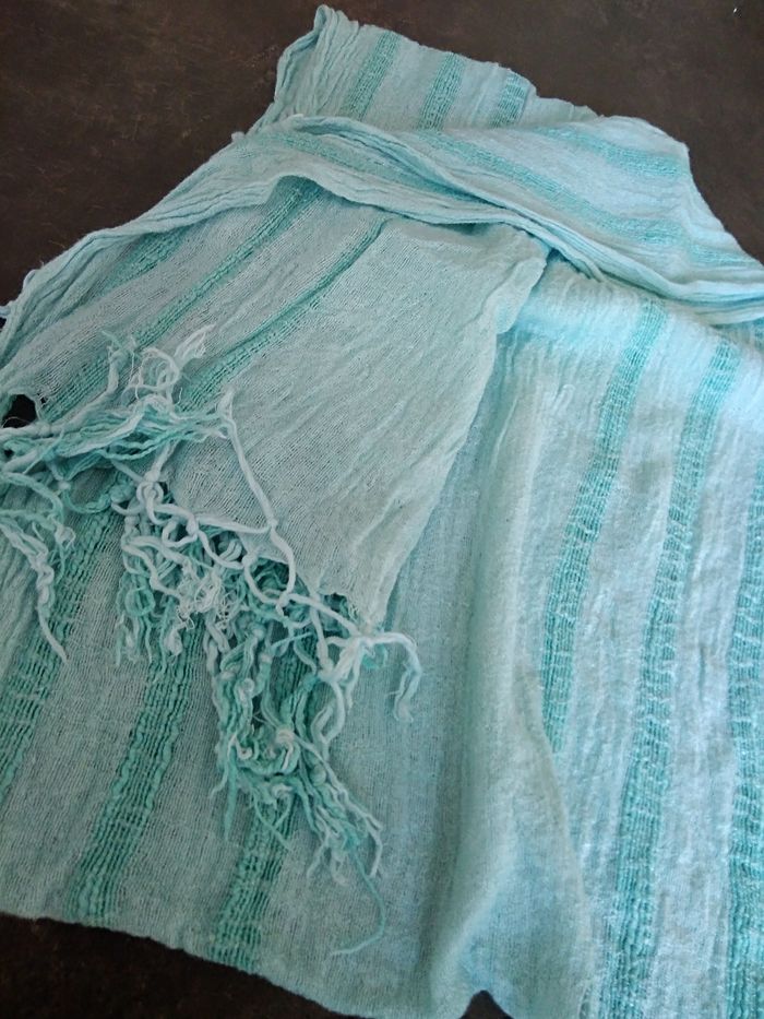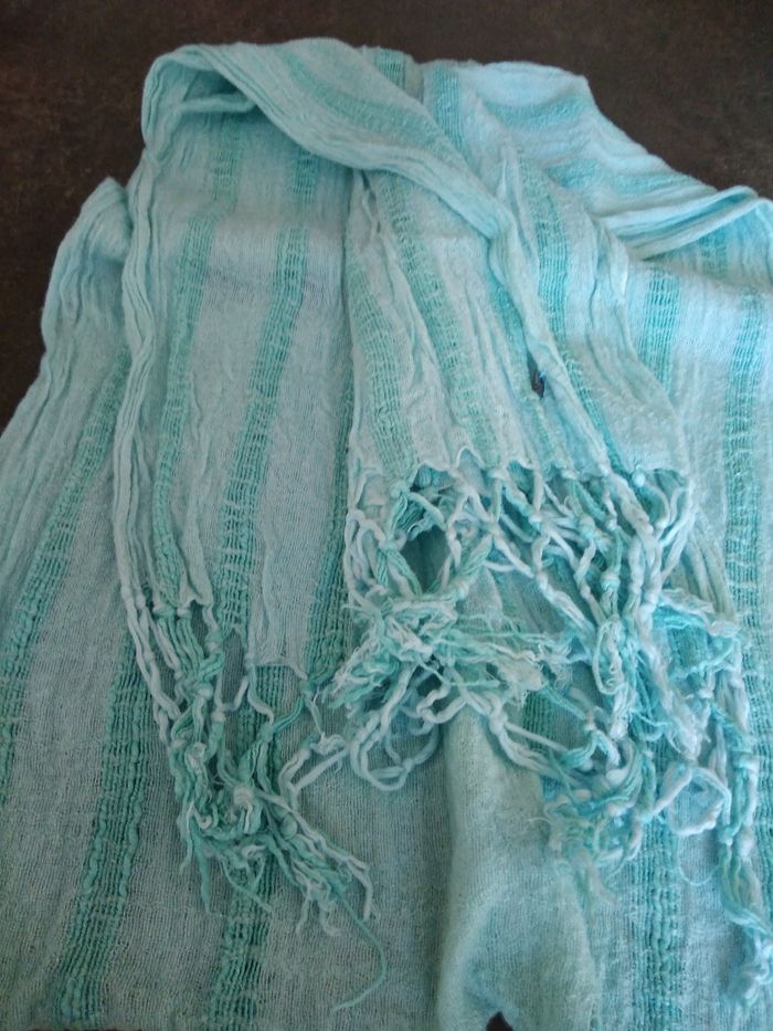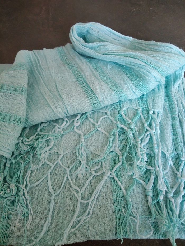 Bonjour, je vends une chèche T2 avec franges pour enfants à partir de 12 ans, bleu lagon, en très bon état. Ikks