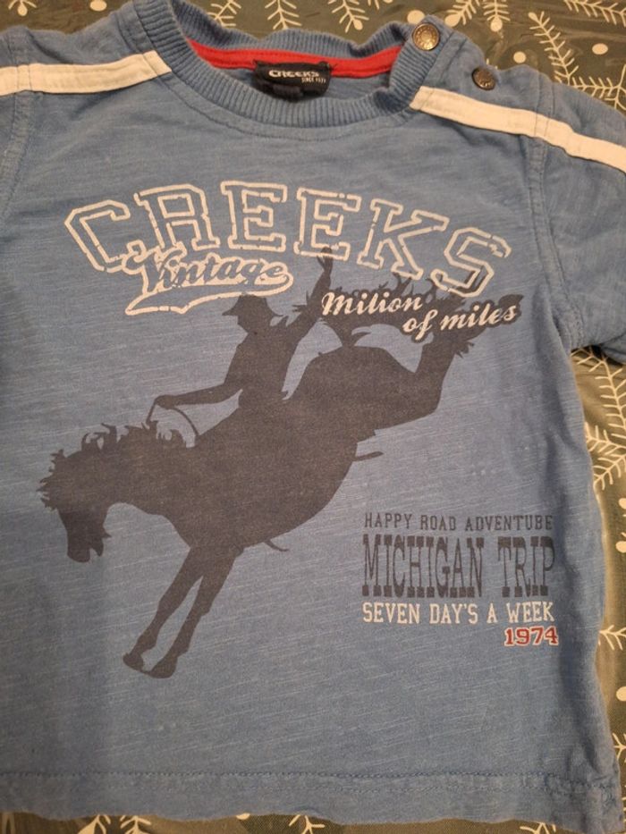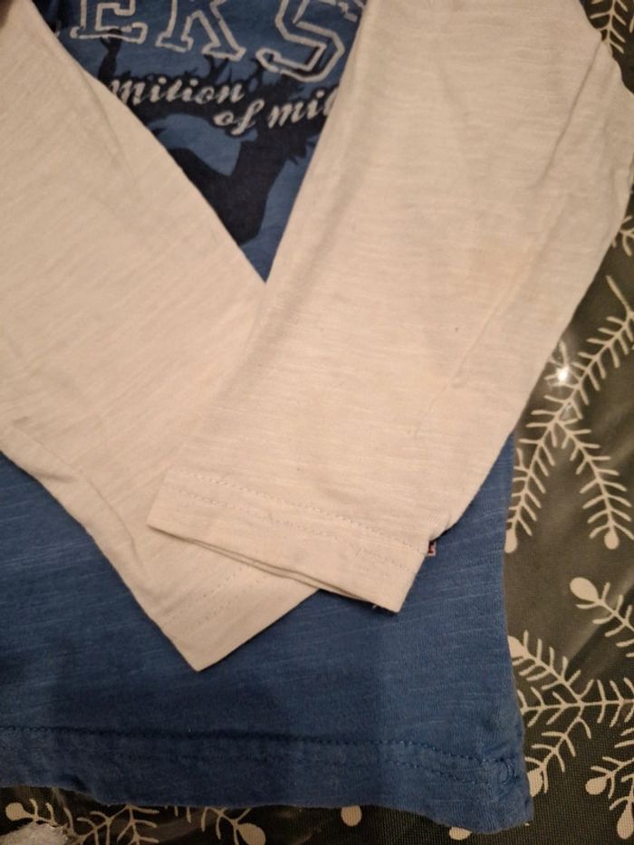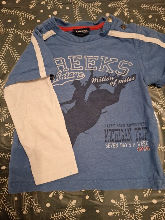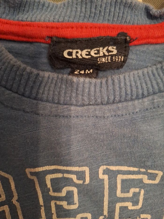 Pull fin Bleu clair et blanc Taille 2 ans Creeks Bon état Petite tache bleue au poignet voir photo