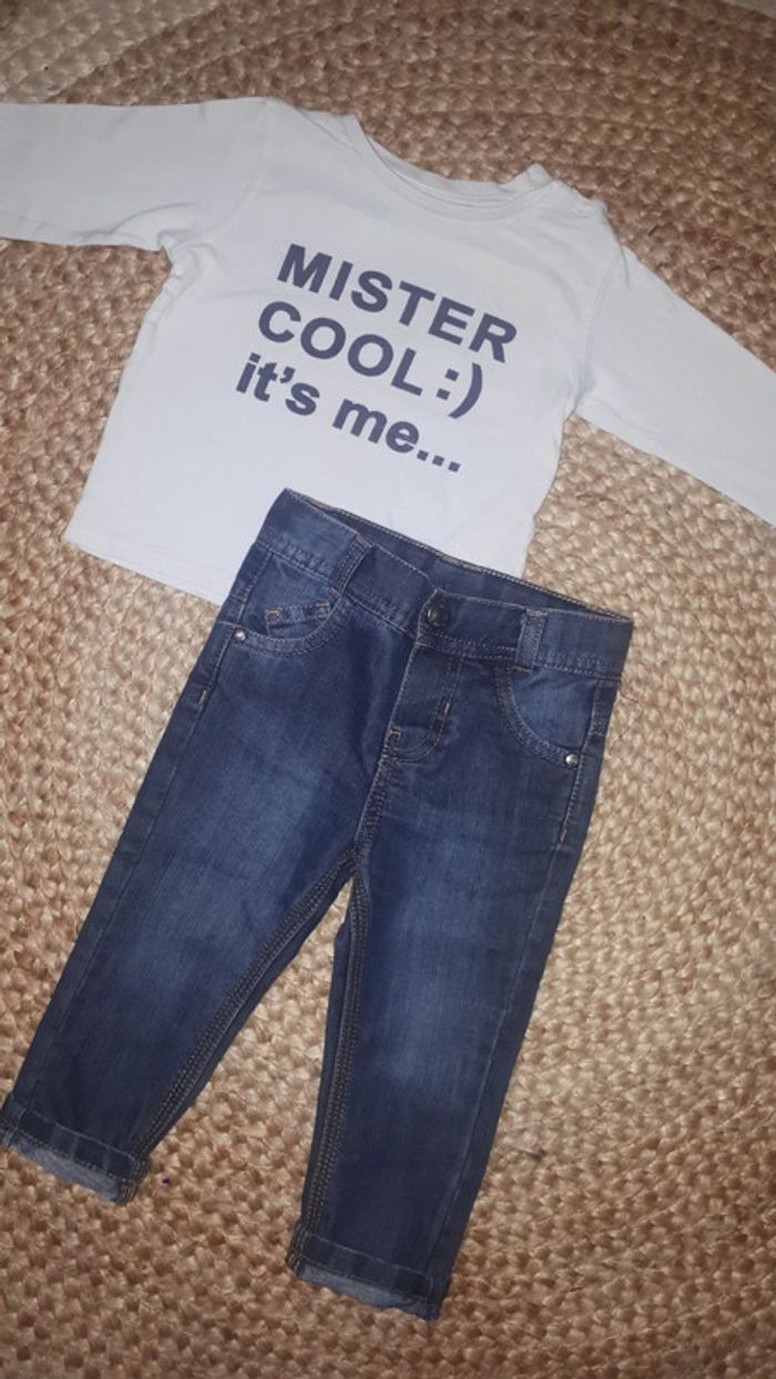 Ensemble garçon jean et tee shirt manches longues - 12 mois