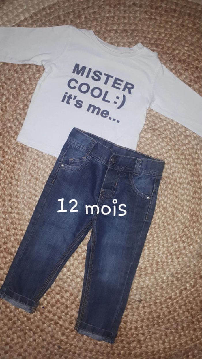Ensemble garçon jean et tee shirt manches longues - 12 mois - photo numéro 1