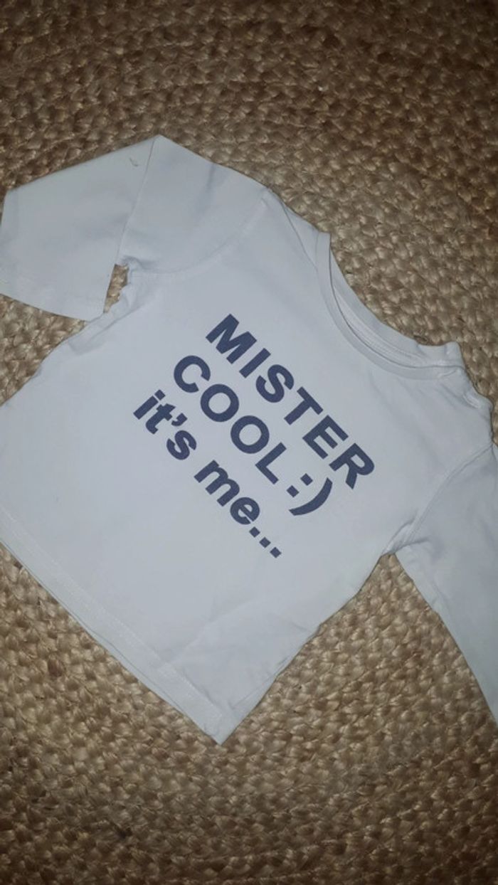 Ensemble garçon. Taille 12 mois. ☆ tee shirt manches longues blanc Gémo, inscription mister cool noire. ☆ jean tape a l oeil, couleur brut. Parfait état, porté 2 fois. N hésitez pas à faire un lot pour amortir les frais de port ! #12moislesloulousgarçon