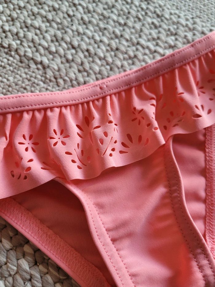 Bas de maillot de bain rose corail avec froufrous brodés. Taille 18 mois. N'hésitez pas à acheter en lot pour profiter des réductions