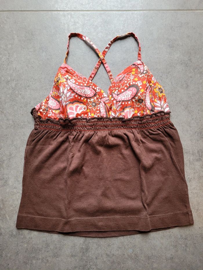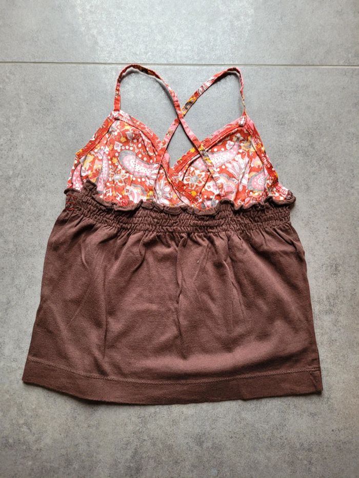 Débardeur fines bretelles marron et fleuri. Taille 10 ans N'hésitez pas à acheter en lot pour profiter des réductions 😁