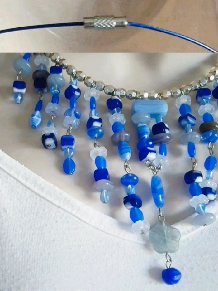 🇫🇷 𝗙𝗿𝗮𝗶𝘀 𝗱𝗲 𝗣𝗼𝗿𝘁 𝗮̀ 𝗽𝗿𝗶𝘅 𝗠𝗶𝗻𝗶 𝗽𝗼𝘀𝘀𝗶𝗯𝗹𝗲 📦 (𝘴𝘶𝘳 𝘒𝘪𝘢𝘣𝘪𝘚𝘦𝘤𝘰𝘯𝘥𝘦𝘔𝘢𝘪𝘯 / 𝘷𝘪𝘢 𝘔𝘰𝘯𝘥𝘪𝘢𝘭 𝘙𝘦𝘭𝘢𝘺) ➸ 1€99 pour 1 article ➸ 0€99 pour un lot ⁠෴﹏෴﹏෴﹏෴﹏෴﹏෴ 💸 ℝ𝕖́𝕕𝕦𝕔𝕥𝕚𝕠𝕟𝕤 𝕤𝕦𝕣 𝕝𝕖𝕤 𝕃𝕠𝕥𝕤 💸 🌱 𝟐 𝐚𝐫𝐭𝐢𝐜𝐥𝐞𝐬 : -5% ☘️ 𝟑 𝐚𝐫𝐭𝐢𝐜𝐥𝐞𝐬 : -10% 🍀 𝟓 𝐚𝐫𝐭𝐢𝐜𝐥𝐞𝐬 : -15% 🌿 𝟏𝟎 𝐚𝐫𝐭𝐢𝐜𝐥𝐞𝐬 : Réduction supplémentaire ⁠෴﹏෴﹏෴﹏෴﹏෴﹏෴ 🗂️ 𝗖𝗮𝘁𝗲́𝗴𝗼𝗿𝗶𝗲 : #flocobijoux 📏 𝗧𝗮𝗶𝗹𝗹𝗲 : Cordon = 45 cm 🏷️ 𝗠𝗮𝗿𝗾𝘂𝗲 : La Mécanique Neko / Fabrication Artisanale / Artisan / Fait Main 🎨 𝗖𝗼𝗹𝗼𝗿𝗶𝘀 : Bleu mariné foncé, bleu électrique, bleu pastel, blanc, transparent, translucide, argent argenté 🏁 𝗧𝗵𝗲̀𝗺𝗲 / 𝗠𝗼𝘁𝗶𝗳 : Rond, ovale, ogive, cube, carrée, rectangle, fleur, marbré, nuance 🧵 𝗖𝗼𝗺𝗽𝗼𝘀𝗶𝘁𝗶𝗼𝗻 : Métal et verre 🌍 𝗣𝗮𝘆𝘀 𝗱𝗲 𝗙𝗮𝗯𝗿𝗶𝗰𝗮𝘁𝗶𝗼𝗻 : France 🇫🇷 📜 𝗗𝗲́𝘁𝗮𝗶𝗹𝘀 𝘀𝘂𝗽𝗽𝗹𝗲́𝗺𝗲𝗻𝘁𝗮𝗶𝗿𝗲𝘀 : Ras de cou avec fermeture à vis. Nombreuses perles façon pampilles. Collier cascade plastron à frange, grand collier, ras de cou imposant 🎁 Possibilité de faire un joli packaging pour 1€ de plus 🎁 Elegant chic luxe mode imposant indie tribal ethnique witch sorciere whimsygoth forest punk avant-garde avant-gariste underground alternative girly boho boheme hippie soirée pop afrique indien fantaisie fantasy