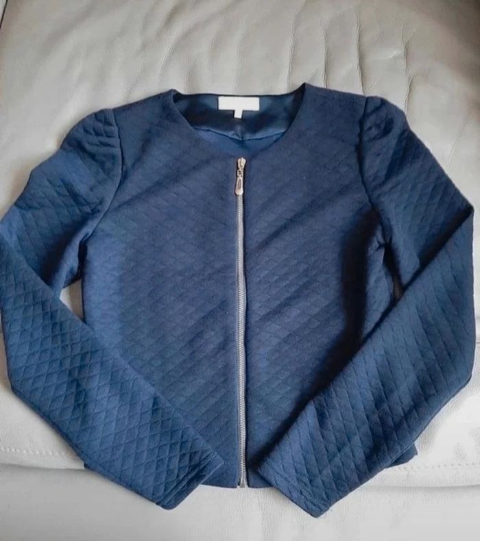 Blazer marine effet matelassé taille M/L mais plutôt S/M. Neuf, jamais porté. Il est super joli et élégant. Je le vends au prix de 12 euros. #TailleS36marine #TailleM38marine