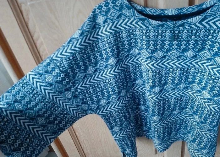 Magnifique haut crop top matière pull avec du joli "brodage" dans les tons bleus. Manches chauve-souris. Neuf. Jennyfer taille 36 mais ok M aussi. Vraie couleur = dernière photo. Je le vends au prix de 15 euros. #TailleS36marine #TailleM38marine