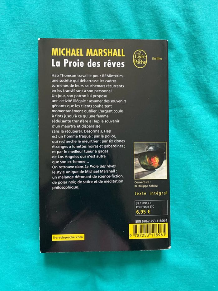 Hap Thomson travaille pour REMintérim, une société qui débarrasse les cadres surmenés de leurs cauchemars récurrents en les transférant à son personnel. Un jour, son patron lui propose une activité illégale : assumer des souvenir gênants que les clients souhaitent momentanément oublier. L'argent coule à flots jusqu'à ce qu'une femme séduisante transfère à Hap le souvenir d'un meurtre et disparaisse sans le récupérer. Désormais, Hap est un homme traqué : par la police, qui recherche le meurtrier ; par six clones étranges à lunettes noires et gabardines; et par le meilleur tueur à gages de Los Angeles qui n'est autre que son ex-femme... On retrouve dans La Proie des rêves le style unique de Michael Marshall : un mélange détonant de science-fiction, de polar noir, de satire et de méditation philosophique.