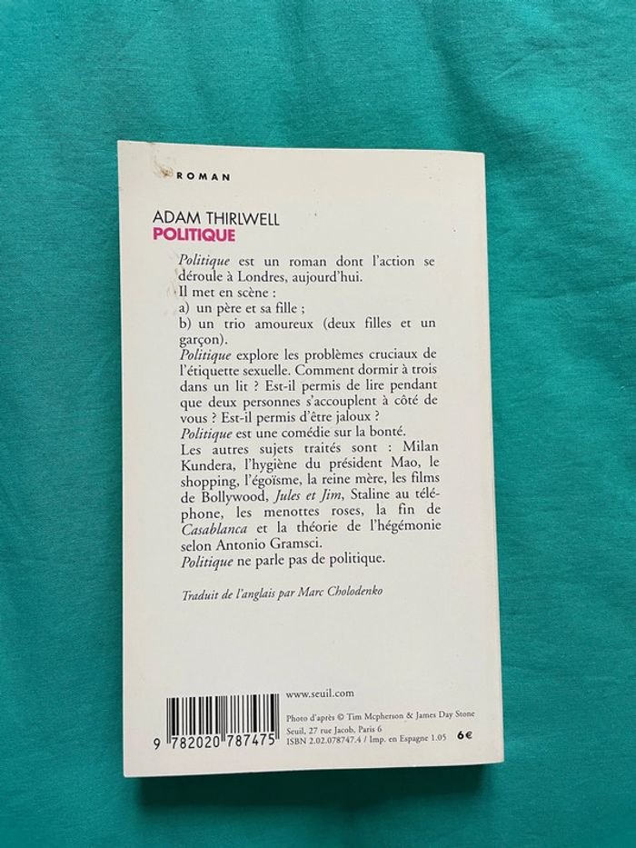 Politique ne parle pas de politique. Politique est une comédie sur l’amour, qui parle de sexe, accessoirement. Nana et Moshe s’obligent à consommer pleinement leur relation de couple, ils doivent se sauter dessus à un rythme très régulier, effectuer de bonnes performances. C’est avec Anjali qu’ils feront enfin du « vrai » sexe, mais comment dormir à trois dans un lit ? Né à Londres en 1978, Adam Thirlwell a connu le succès très jeune. Ses livres sont traduits dans plus de trente pays. L’Évasion et Candide et lubrique sont disponibles en Points. « C'est aussi la satire d'une époque où la baise est devenue une religion. Thirlwell, very well. » André Clavel, L’Express Habituées à proposer des auteurs anglo-saxons de choix au public hexagonal, les éditions de l’Olivier sortent, pour cette rentrée littéraire de janvier, Politique, de Adam Thirwell, un jeune Anglais né en 1978 rédacteur en chef adjoint de la revue littéraire « Areté », fondée par le poète Craig Raine. Il s’agit d’un livre très moderne – best-seller outre-Manche en voie de traduction dans dix-huit pays - où la politique a un sens moins collectiviste qu’individuel ou altruiste, surtout pour ce qui est de la chose sexuelle, matière même du livre. Sur un mode tragi-comique pouvant faire songer aux romans de Milan Kundera – qui est d’ailleurs explicitement évoqué voire convoqué ici -, Politique traitera donc de ce qu’il convient d’appeler le sexe dans la Cité via les relations complexes entretenues entre un père et sa fille, ainsi qu’entre deux filles et un garçon. Normal : la sexualité ne devient-elle pas ardue dès lors qu’elle implique pour sa pratique la présence de plusieurs personnes réelles (au moins deux) ? Un roman assez drôle et réussi… avec encore un peu d’acné cependant.