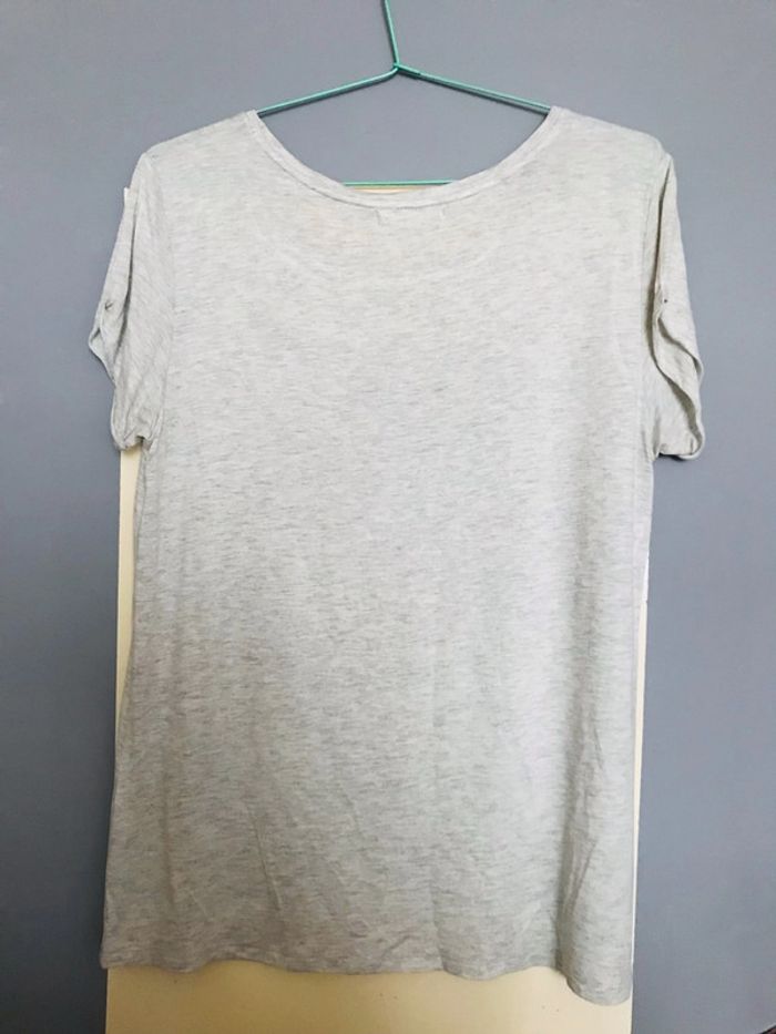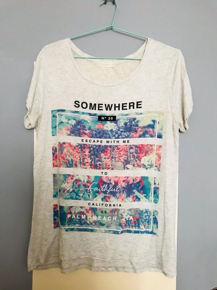 T-shirt Bershka gris motif fleurs "Somewhere, N°20, Escape with me to California, Faithful, Palm Beach, L.A."