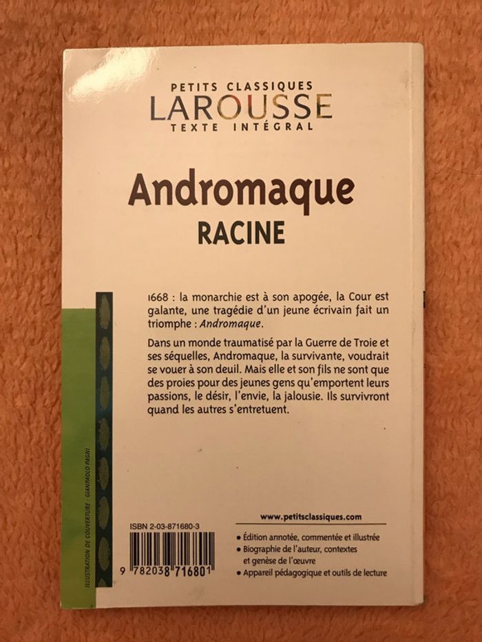 Andromaque - Jean Racine - Petits Classiques Larousse - photo numéro 1