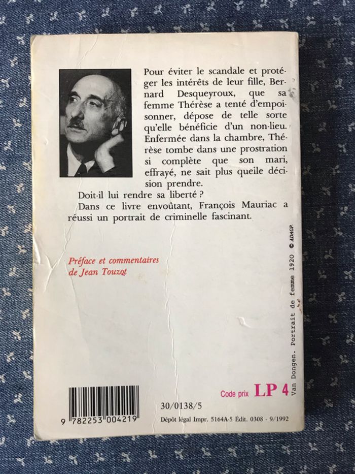 Jean Touzot (préfacier) Pour éviter le scandale et protéger les intérêts de leur fille, Bernard Desqueyroux, que sa femme Thérèse a tenté d'empoisonner, dépose de telle sorte qu'elle bénéficie d'un non-lieu. Enfermée dans sa chambre, Thérèse tombe dans une prostration si complète que son mari, effrayé, ne sait plus quelle décision prendre. Doit-il lui rendre sa liberté ? Pages jaunies et sentent l'ancien. La tranche est un peu abîmée (voir photos)