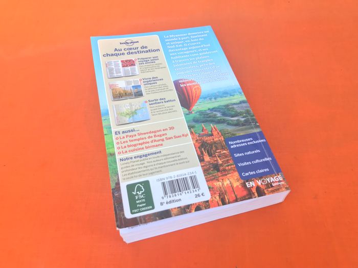Simon Richmond, Austin Bush , David Eimer , Mark Elliott , Nick Ray Guide Myanmar (Birmanie) (2015) 8ème Edition 445 pages (200x130x25mm) Poids : 480grs Le Myanmar demeure un monde à part, fascinant et unique, en Asie du Sud-Est. Il s'ouvre davantage aujourd'hui aux voyageurs, et ses habitants vous guideront à travers les plaines jalonnées de temples centenaires, près des pagodes couvertes d'or ou vers les villages des minorités ethniques dans les montagnes du Nord