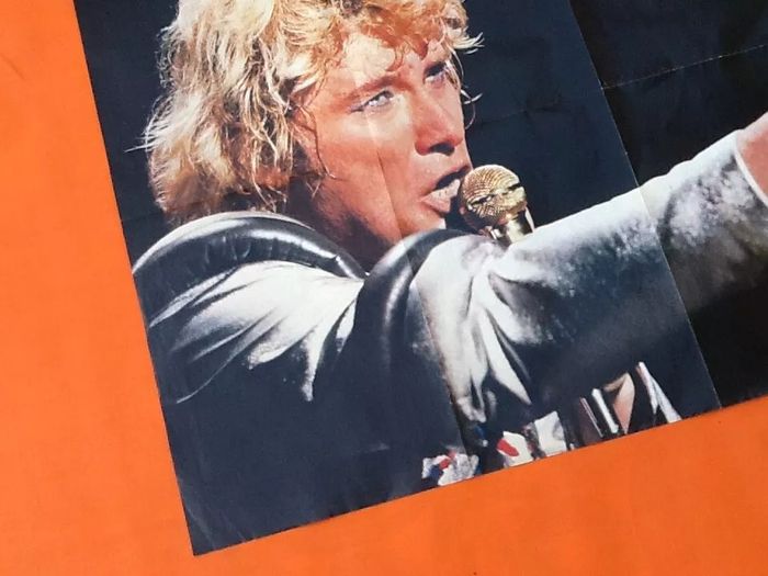 Poster Johnny Hallyday / Sheila (Mai 80) Grosses bises à tous " Comme le soleil " Podium (870X470)mm Poids : 35grs