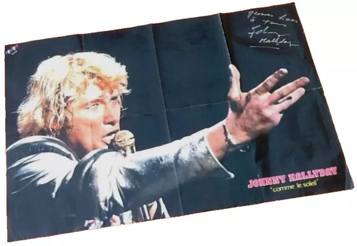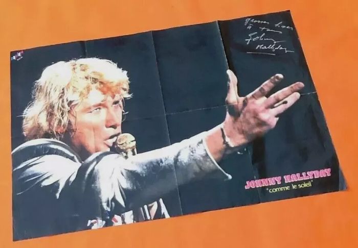 Poster Johnny Hallyday / Sheila (Mai 80) Grosses bises à tous " Comme le soleil "