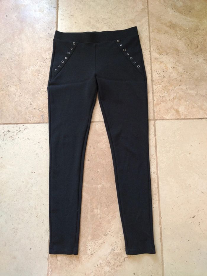 Étiquette de taille coupée. La taille mesure 37 cm. Le pantalon mesure 67 cm de l'entrejambe au bas. Taille élastique