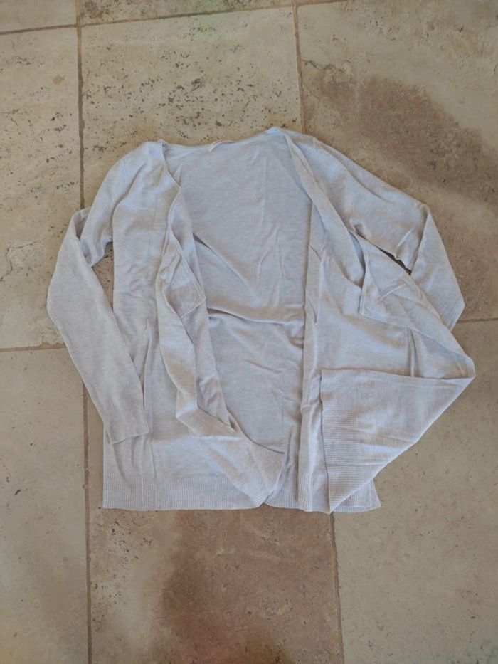 Veste ouverte. Pas de fermeture. Elle arrive en dessous des fesses