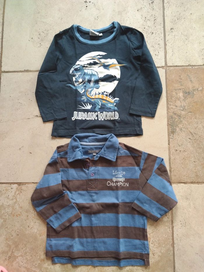 1 polo 3 suisses (102 noté sur l'étiquette) 1 t shirt Jurassic world