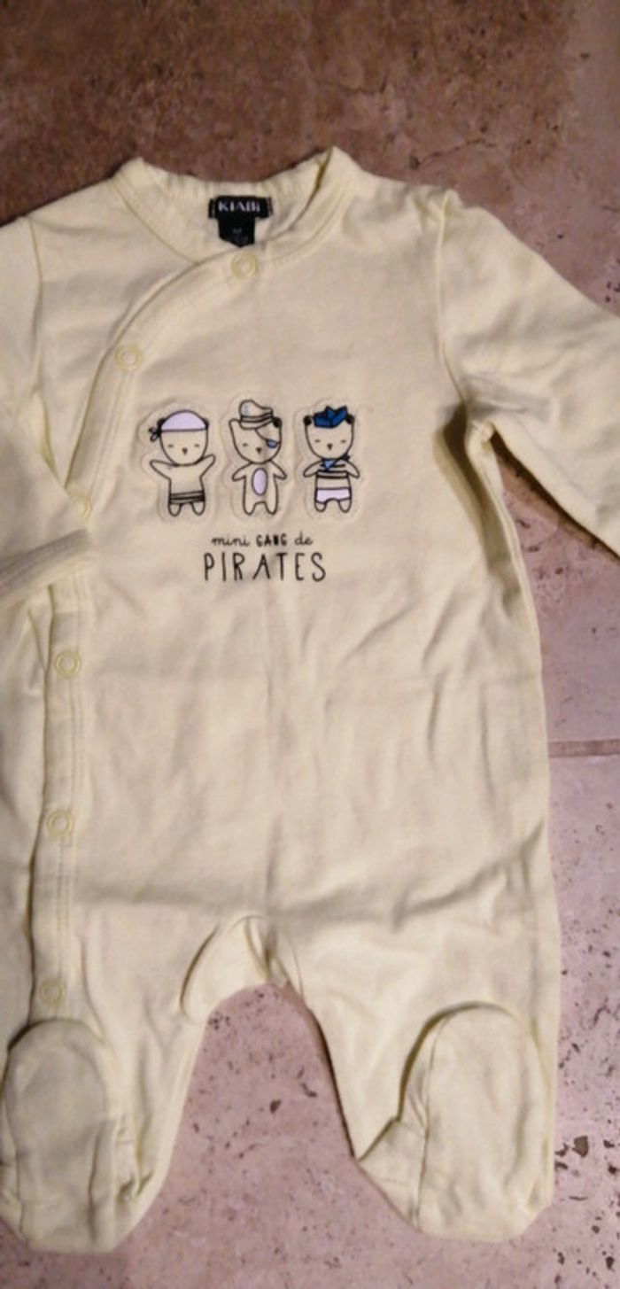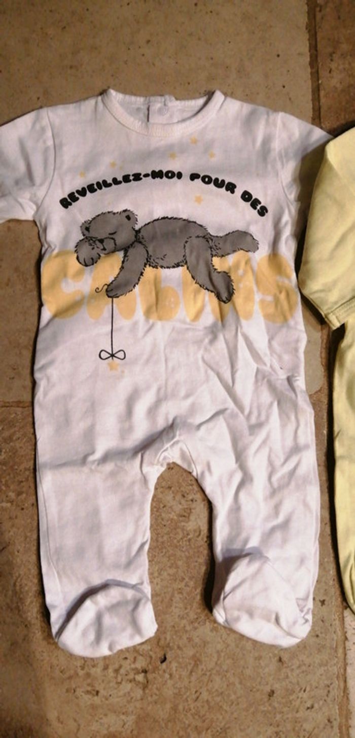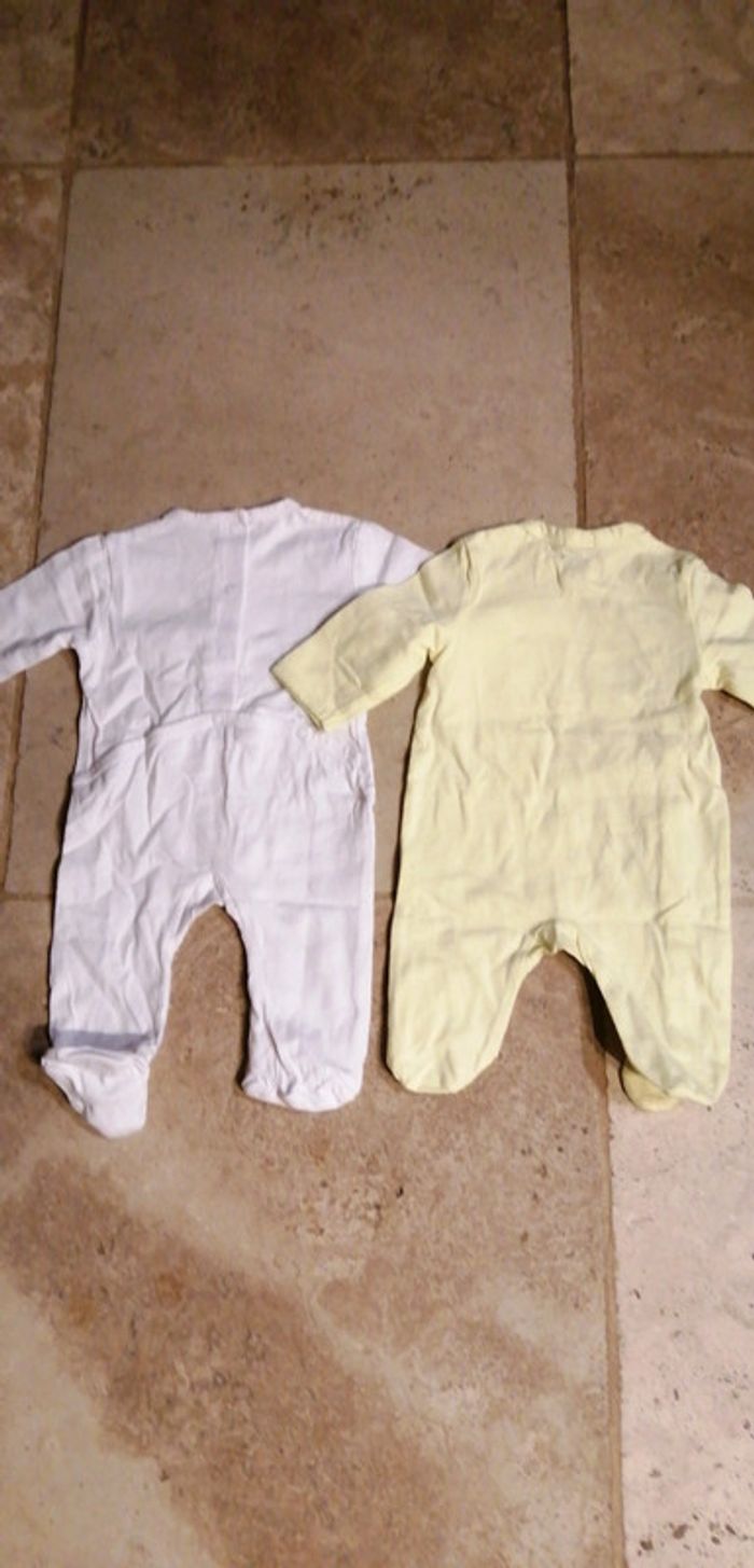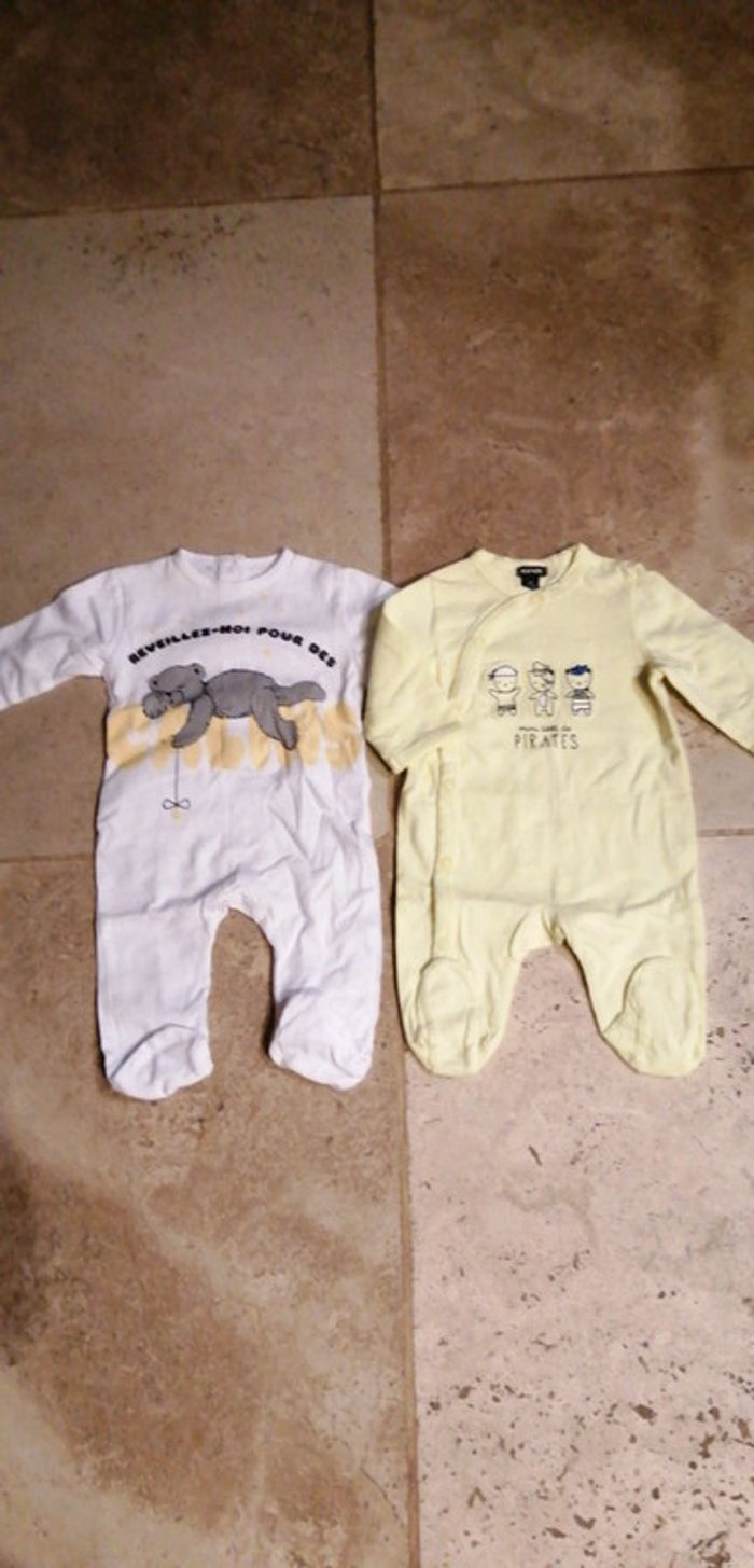 1 pyjama blanc “bébé reve“ et 1 pyjama jaune kiabi. En coton