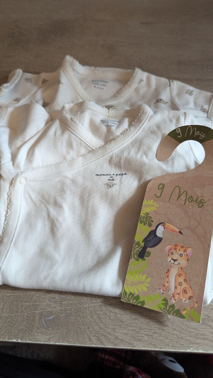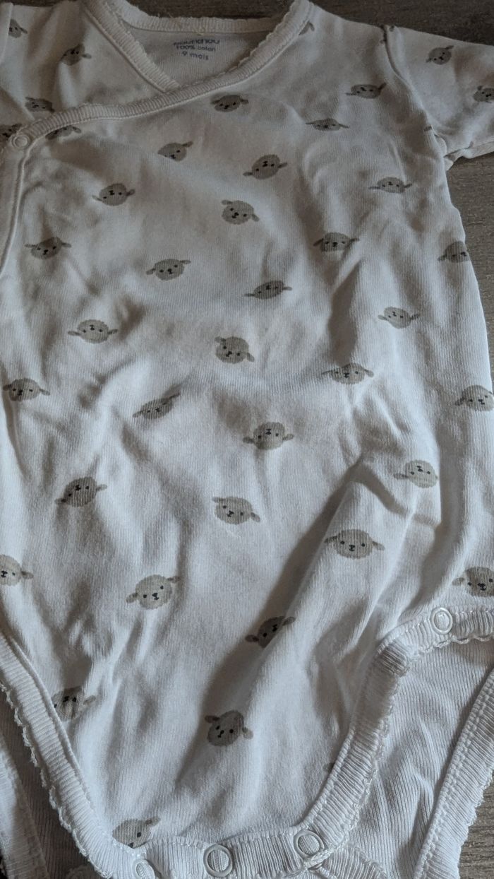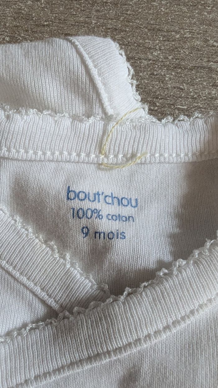 Lot de 2 bodies manche courte blanc Bout'chou en coton. Motif mouton 🐑. Fermeture à pression sur l'avant.