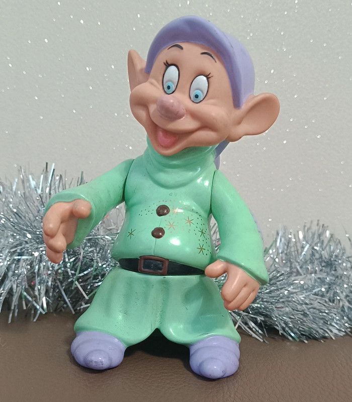 Poupée articulée vintage 1992 Dopey - Disney Blanche-Neige Sept Nains Mattel Barbie- Figurine rétro en caoutchouc Dopey posable de Blanche-Neige et les sept nains de Disney Jouet figurine collector, collection vintage Maison non fumeur et sans animaux n'hésitez pas a faire des lots