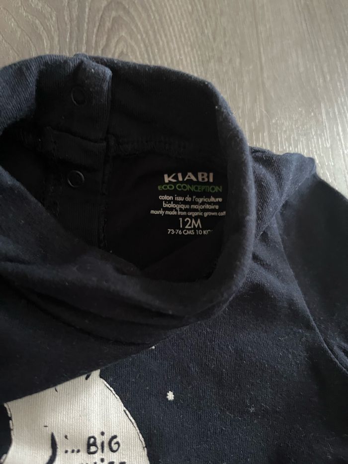 Excellent état Pantalon chaud et t-shirt manches longues / pull fin avec col roulé Kiabi 12 mois