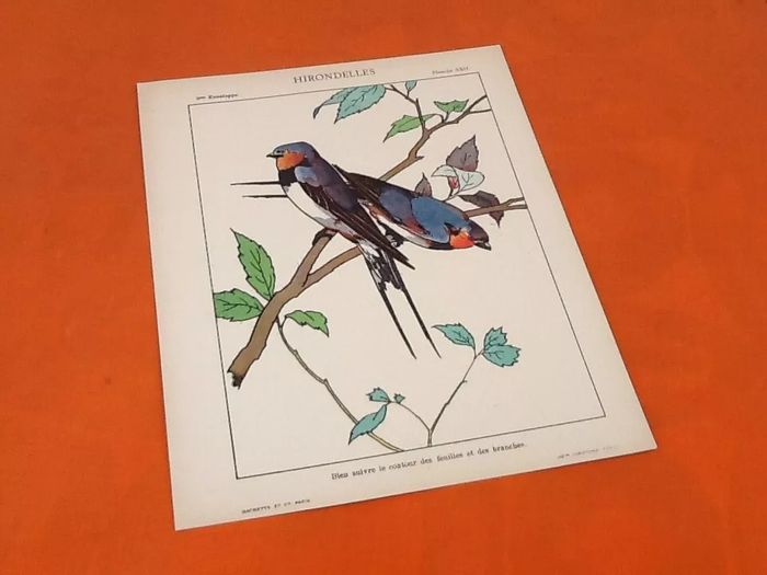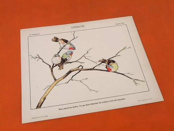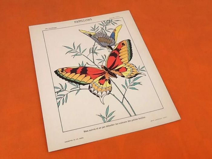 (article vendu en l' état, état d' usage, voir toutes les photos) 4 anciennes planches à dessin Mes premiers pinceaux, Oiseaux, Papillons, Nid.. Série A Enveloppe N° 6 (250x200)mm Editeurs Hachette et Cie Imprimeries Lemercier Paris Poids total : 60grs