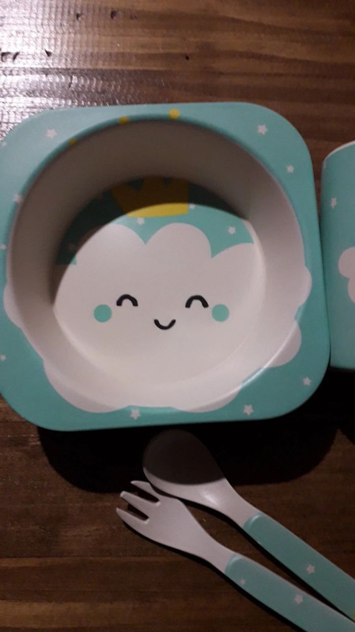 Ensemble repas bébé motif nuage - photo numéro 3