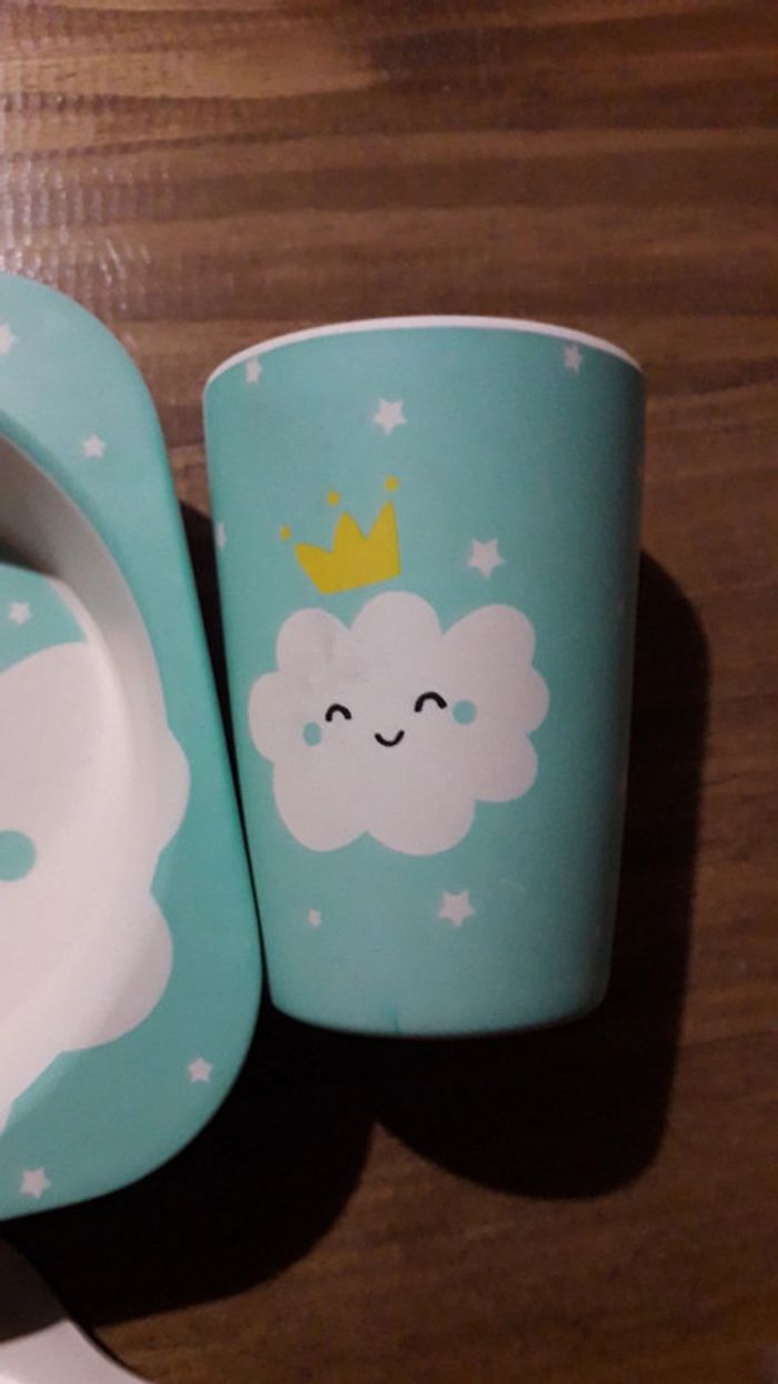 Ensemble repas bébé motif nuage - photo numéro 4