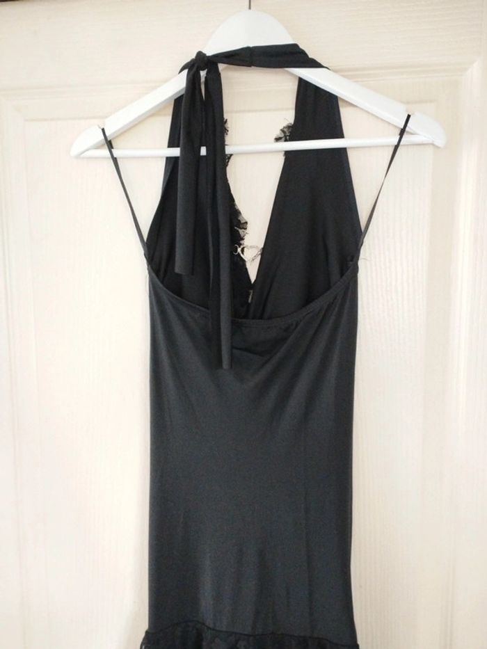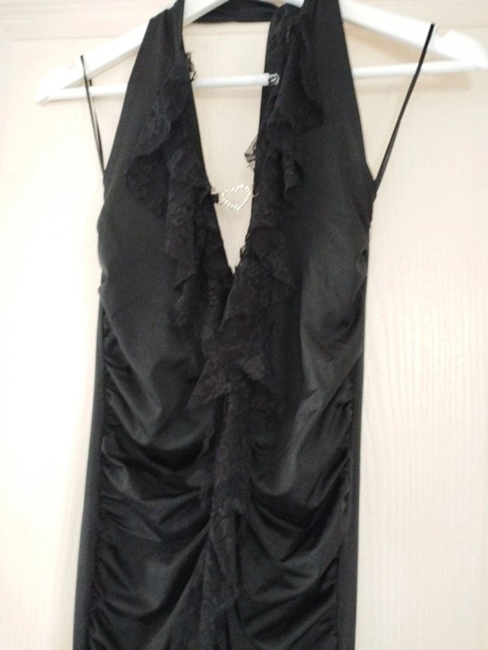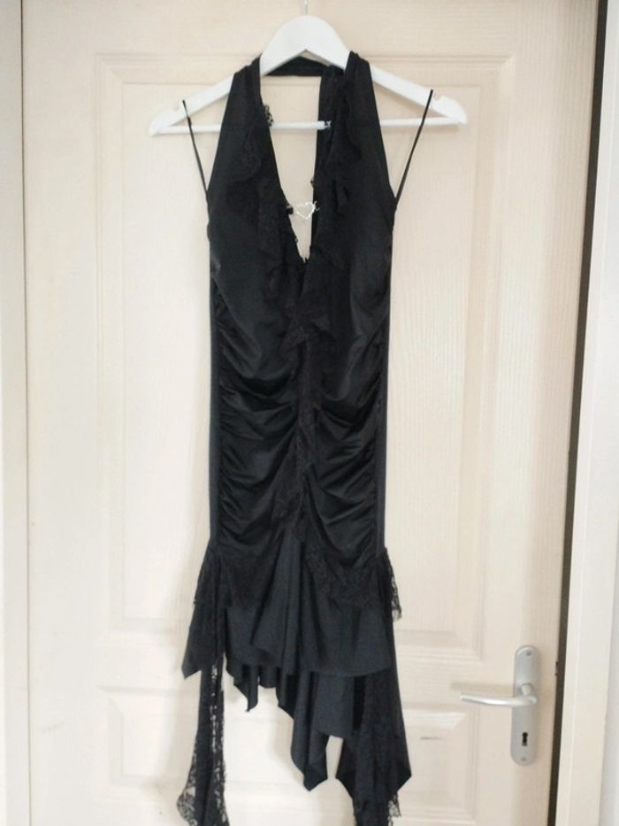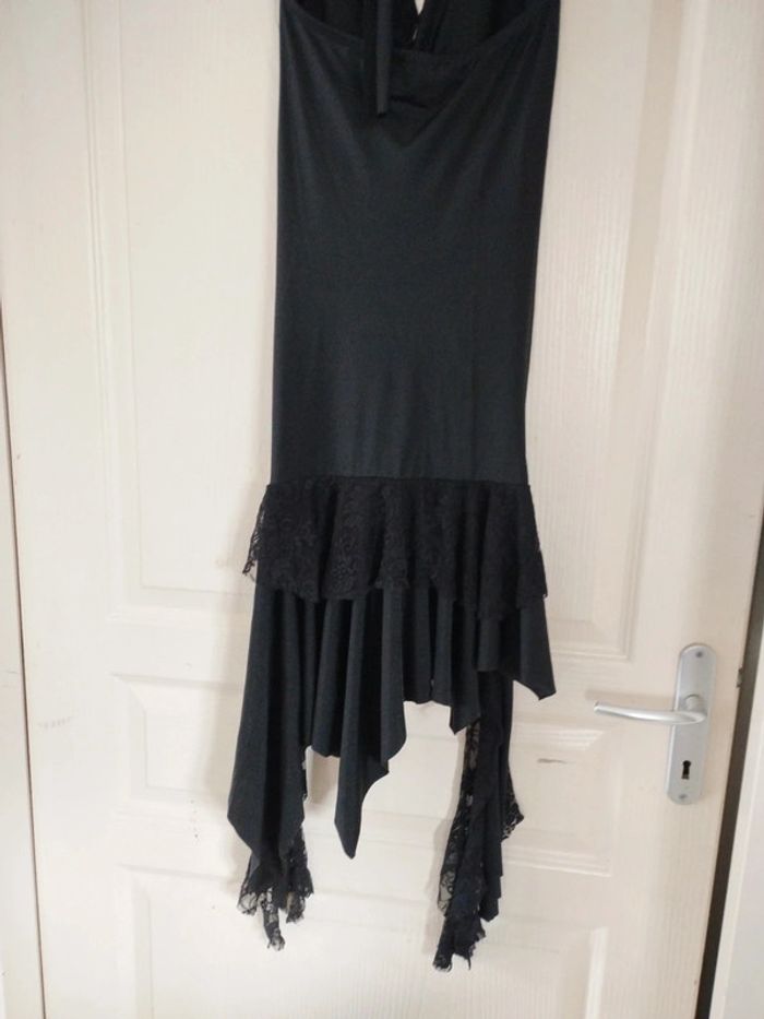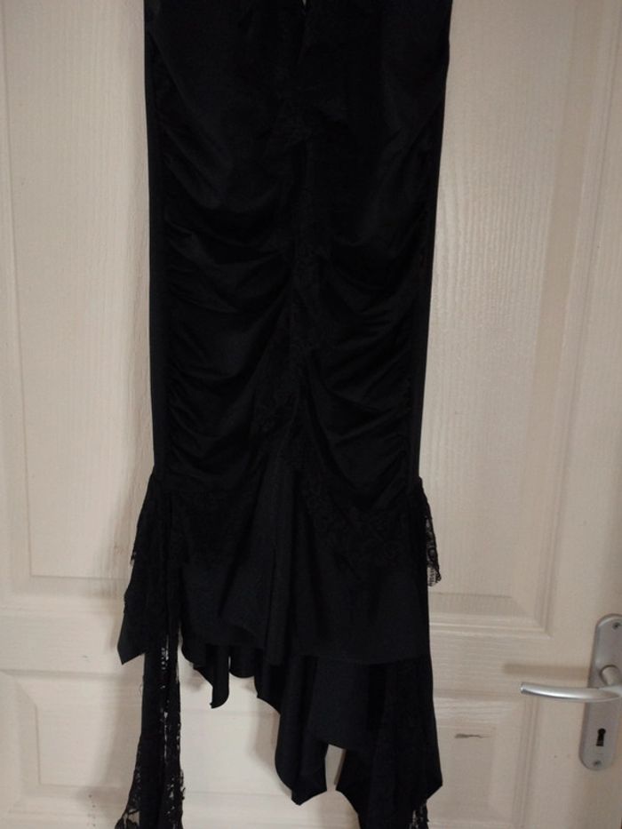 Robe noire de soirée, asymétrique, dentelle et lycra Échancrée devant Très bon état Taille xs