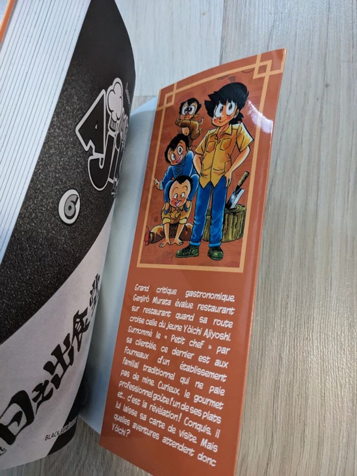 Mister Ajikko manga tome 6 1ere édition avec les rabats. Gaspard Savoureux (un grand gastronome du pays) aussi appeler "Son Excellence" est en tournée d'inspection. Mr. Savoureux s'arrête devant un petit restaurant familial où il rencontre un jeune homme du nom de Thomas. Ce petit gars, fan de skateboard, est surnommé "Petit Chef" depuis qu'il a pris en main la cuisine du restaurant suite à la disparition de son père. Gaspard Savoureux, conquis par ce petit bout d'homme, va inviter Thomas à le rejoindre afin qu'il se mesure aux meilleurs chefs mondiaux et réalise le rêve de son père : devenir un grand chef. Mes autres annonces même âge / même public #joeypotter91_jeuxjouets #joeypotter91_filleseptans #joeypotter91_fillehuitans #joeypotter91_filleneufans #joeypotter91_filledixans #joeypotter91_filleonzeans #joeypotter91_filledouzeans #joeypotter91_garçonseptans #joeypotter91_garçonhuitans #joeypotter91_garçonneufans #joeypotter91_garçondixans #joeypotter91_garçononzeans #joeypotter91_garçondouzeans