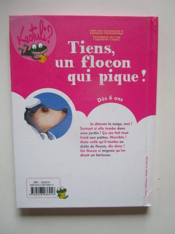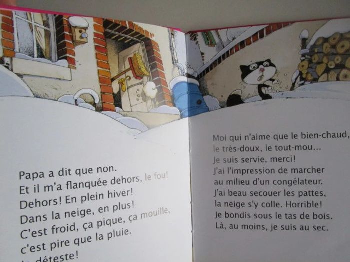 Je déteste la neige, moi ! Surtout si elle tombe dans mon jardin ! Ca me fait tout froid aux pattes. Horrible ! Mais voilà qu'il tombe un drôle de flocon, dis donc ! Un flocon si mignon qu'on dirait un hérisson.Cette histoire de la chatte Thérèse, au caractère bien trempé et qui sait parfaitement se faire comprendre, amusera les enfants qui lisent tout seuls. Éditeur ‏ : ‎ Hatier 29 pages Âge de lecture ‏ : ‎ 5 - 7 ans Dimensions ‏ : ‎ 14.4 x 0.4 x 19.2 cm Livre en très bon état Je vends d'autres livres premières lectures #phil_peg_premiereslectures #premièreslectures #neige #hiver #moithérèsemiaou