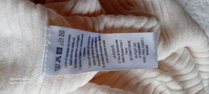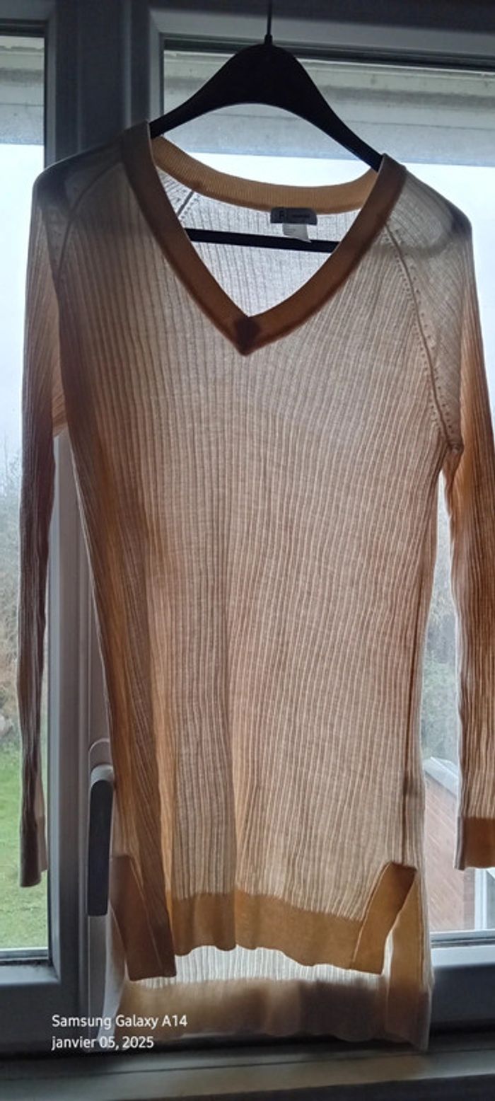 Pull tunique manches longues col V en 50 % viscose et 50 % acrylique maille côtelée plus court devant que devant fentes sur les côtés longueur 77 cm devant 83 cm derrière largeur aisselles à aisselles 52 cm longueur manches 46 cm juste porté une ou deux fois en très bon état #midole #midolefemme #midolefemme40 #pullfemme40 #pullfemmeL #femme40 #L #laredoute #crème #pullfin #pulltunique #pulllong #pullmaillecotelée #pullcolv