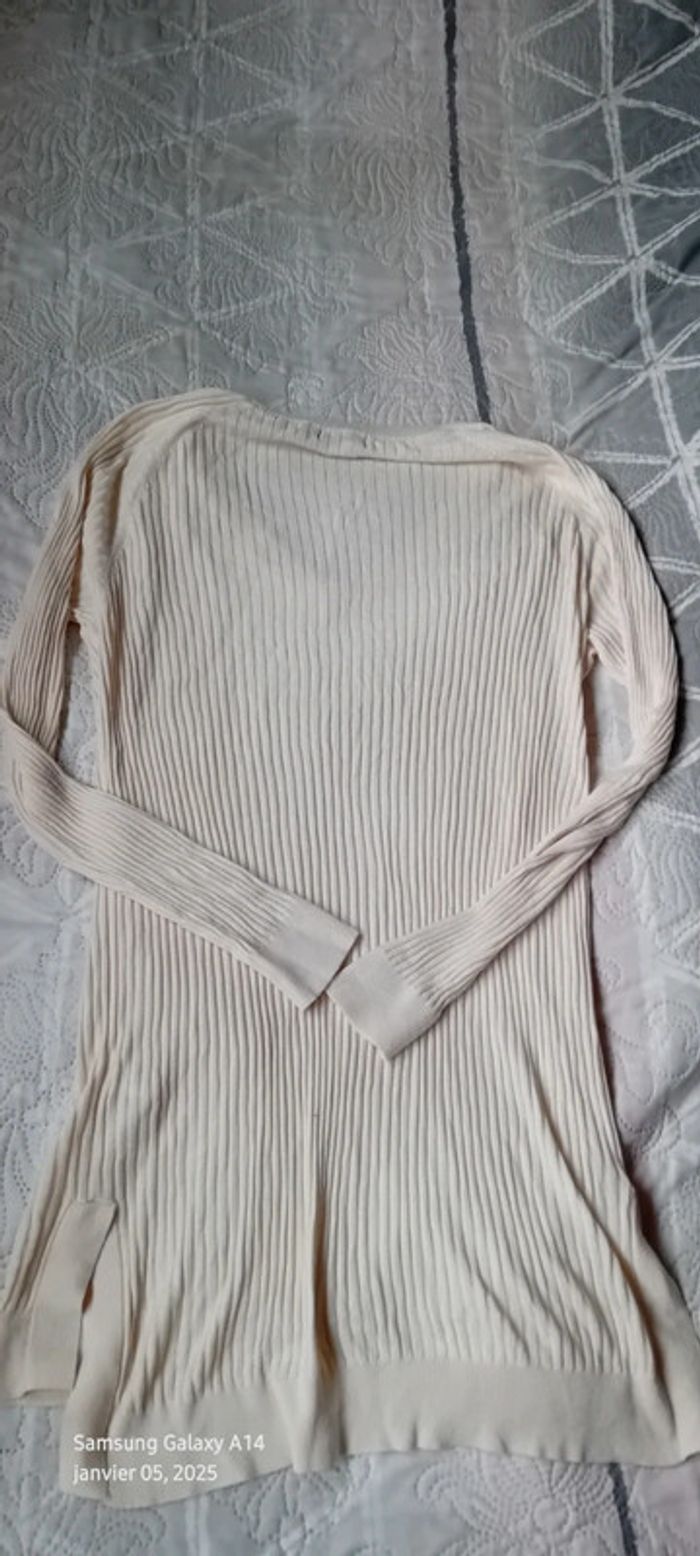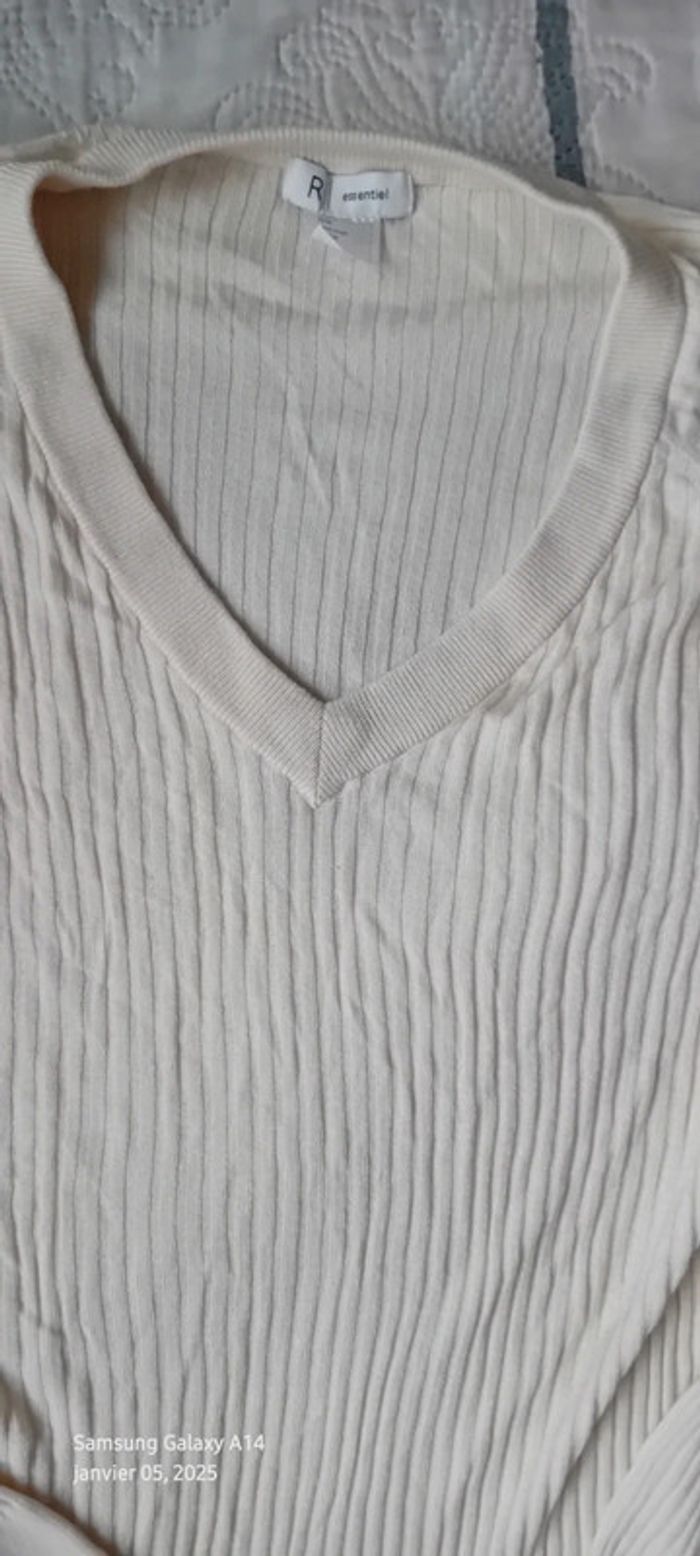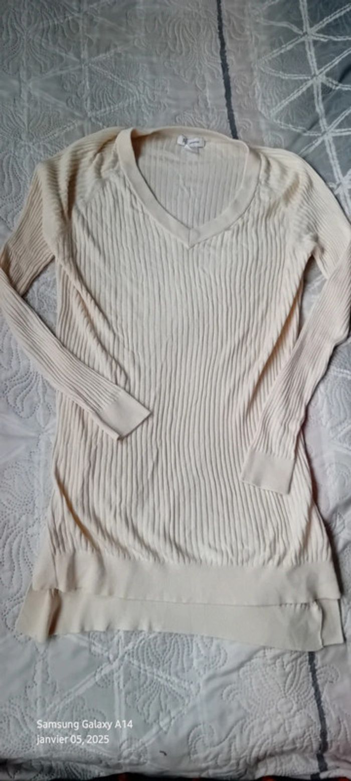Pull tunique très fin maille côtelée col V crème femme L la redoute - photo numéro 2