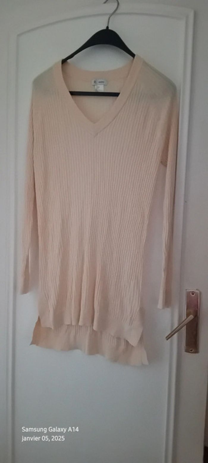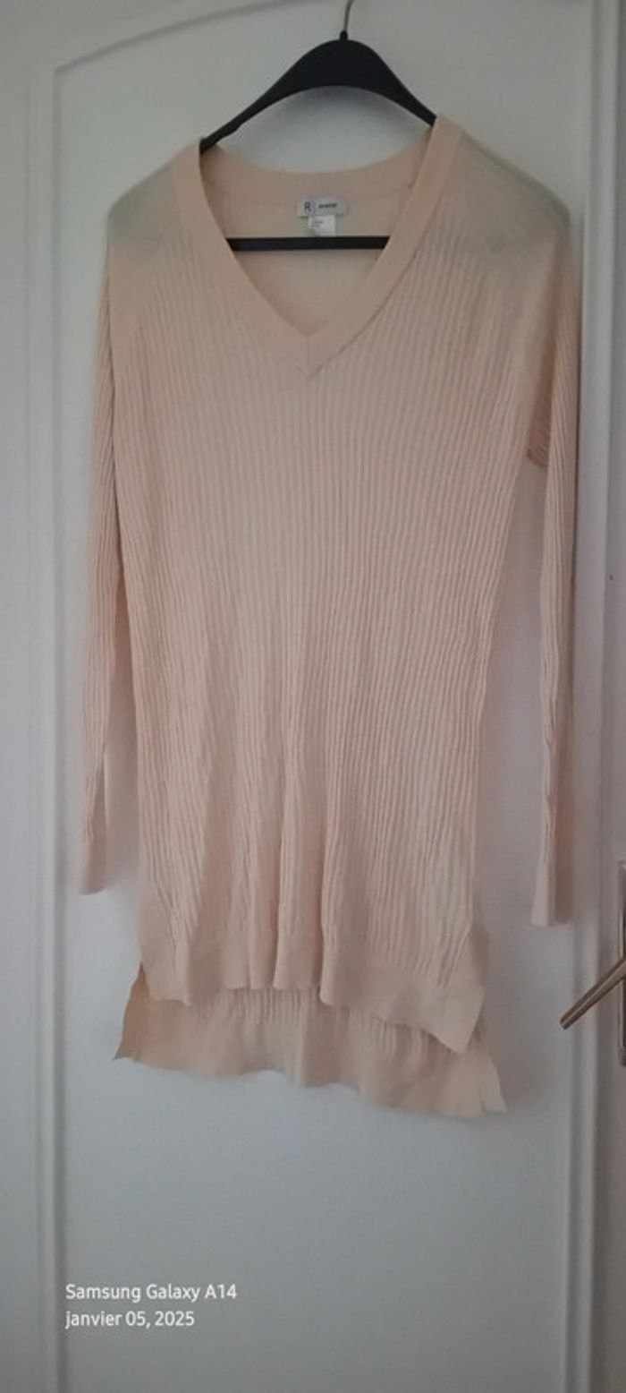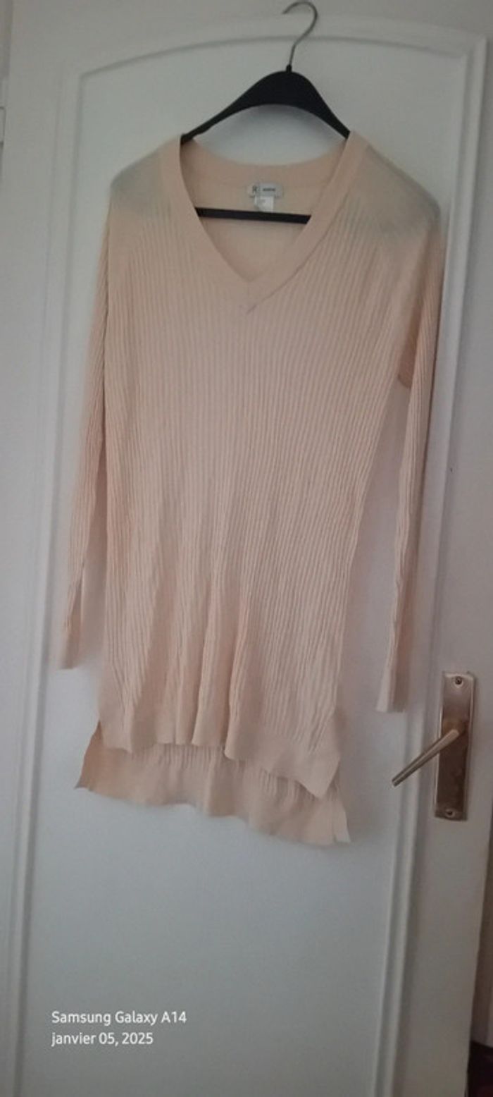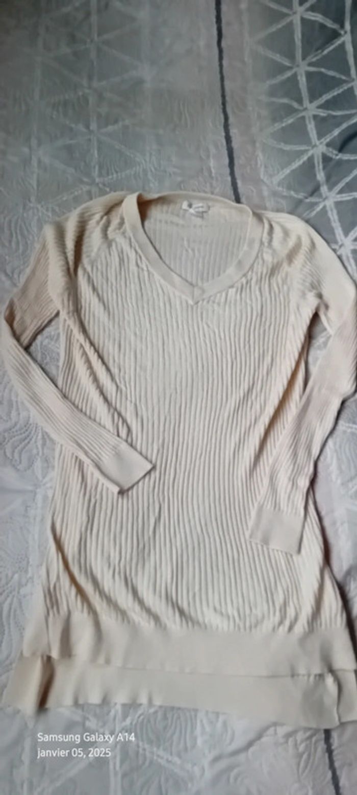 Pull tunique très fin maille côtelée col V crème femme L la redoute - photo numéro 2