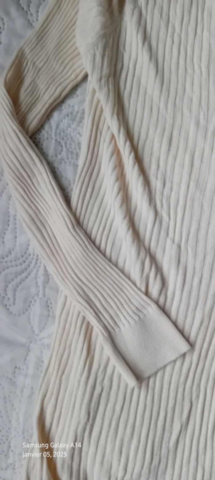 Pull tunique très fin maille côtelée col V crème femme L la redoute - photo numéro 5